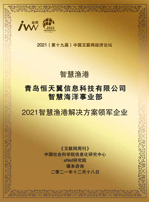近日,2021(第十九届)中国互联网经济论坛在北京举行,论坛揭晓了由中国社会科学院信息化研究中心、《互联网周刊》等权威机构评选的2021(i-China)年度“金i奖”获奖名单。青岛恒天翼信息科技有限公司智慧海洋事业部和智慧城市事业部凭借成熟稳定的智慧化解决方案,荣获“2021智慧渔港解决方案领军企业”和“2021智慧化工园区解决方案领军企业”,这标志着恒天翼的智慧化解决方案得到了业界权威部门的认可。
