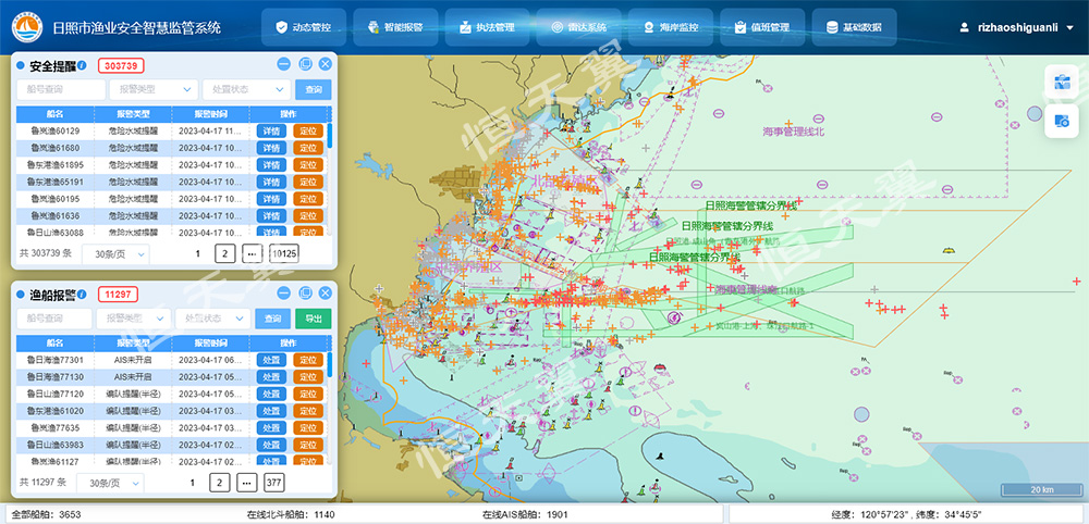 恒天翼智慧渔港监管平台实现了海上通信的无缝信息桥梁,数据中心整合了港口各类数据,实现了数据的实时更新与高效融合。GIS赋能,安全可视化,实现了船舶动态监管的精准执法。
