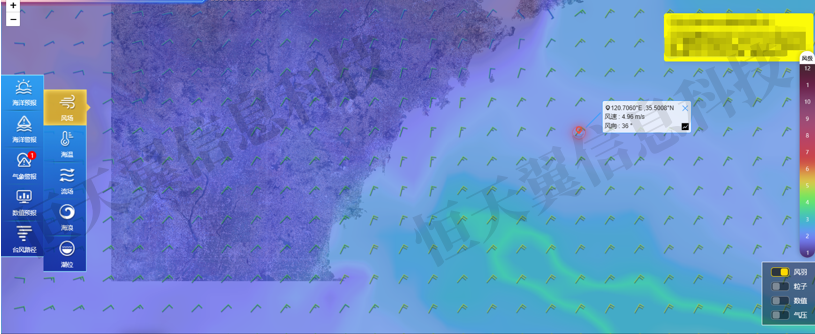 恒天翼在渔业监管和服务方面具有多年经验,能够接入多源数据,并使用GIS图层分析,对经过算法处理后的数据进行缓冲处理。实现实时气象预报数据的GIS叠加展示,并能够通过渔港预警预报中心将实时预警信息发送给渔业管理人员,提升海上作业的安全性和效率。